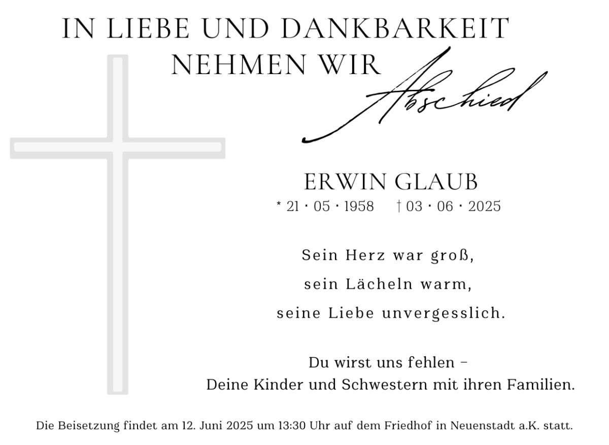 Erwin Glaubgestorben am 3. Juni 2025